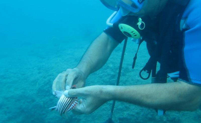 Prof. Dr. Mehmet Gökoğlu, önceki gün yaptığı dalışta bir balığın, amatör balıkçının oltasından koptuğu tahmin edilen misinaya yakalandığını fark etti. Balığı bulunduğu yerden kurtarmak isteyen Prof. Dr. Gökoğlu, balığın misinanın ucundaki iğneyi yuttuğunu görünce misinayı, balığın ağzına yakın noktadan kesmek zorunda kaldı. Özgürlüğüne kavuşan balık yüzerek gözden kayboldu.