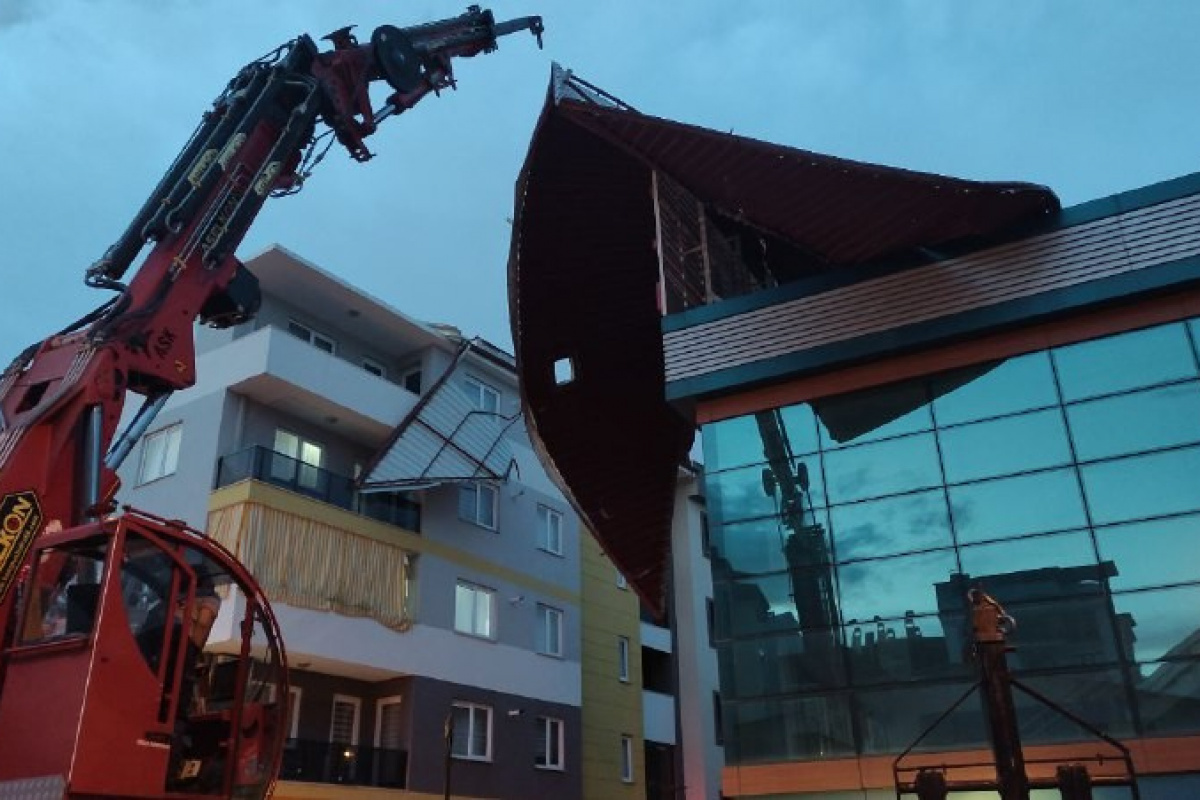 Bir eve ait çatı ise yan tarafında bulunan bir iş yeri levhasının üzerine düştü. Rüzgar nedeniyle elektrik telleri kopması sonucu ev ve iş yerlerinde yangın çıkarken kent, elektriklerin kesilmesiyle karanlığa büründü.
