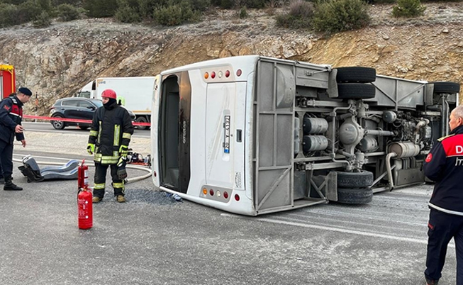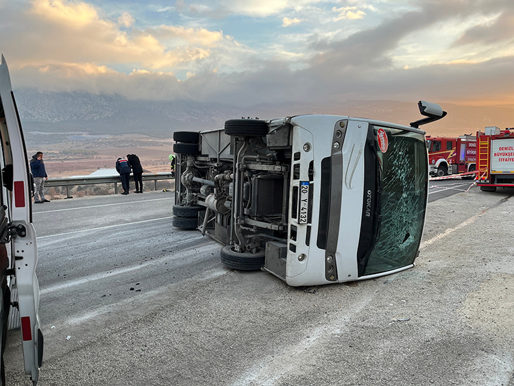 Antalya-Denizli kara yolu Serinhisar ilçesi girişinde 20 Y 4132 plakalı servis midibüsü, ilk belirlemeye göre buzlanma nedeniyle kontrolden çıkarak karşı şeride geçti ve devrildi.