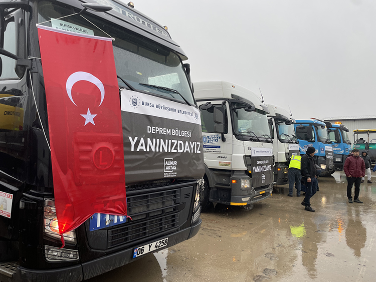 Depremin hemen ardından 5 araç ve 22 itfaiye personelini arama kurtarma çalışmaları için Malatya'ya yollayan Bursa Büyükşehir Belediyesi, 5 tır su, 1 tır gıda ve BURFAŞ bünyesindeki mobil mutfağı 45 personelle Gaziantep'e göndermişti.