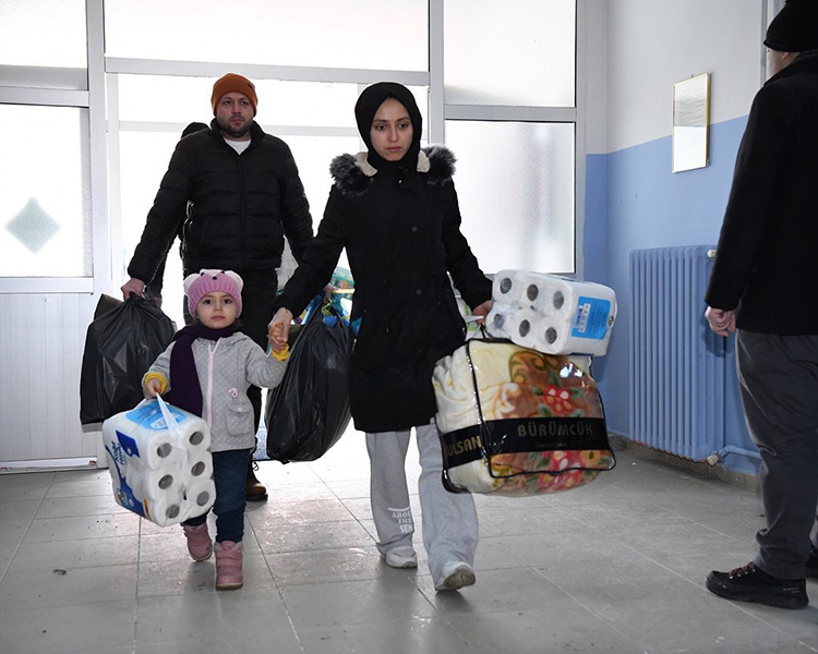Nevşehir Valiliği koordinesinde başlatılan yardım kampanyası kapsamında vatandaşlar, gıda, battaniye, kışlık giyecek, ısıtıcı ve diğer ihtiyaç malzemelerini Damat İbrahim Paşa Spor Salonu'na getirerek görevlilere teslim ediyor.