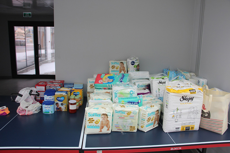 Kampanya kapsamında toplanan battaniye, ısıtıcı, çocuk bezi, mama, bot, su ve giysiler tırlarla deprem bölgesine gönderiliyor.