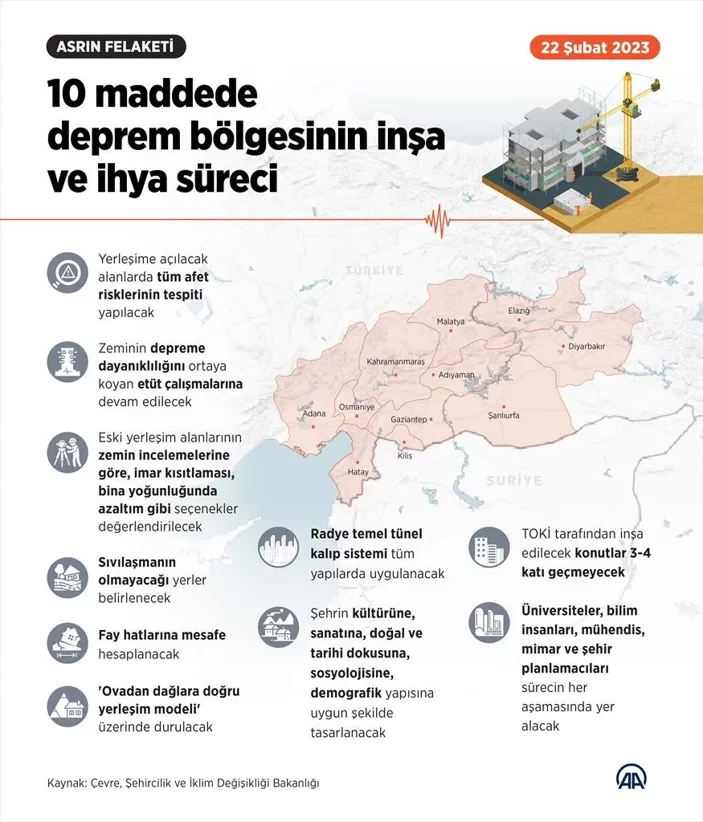 Çevre, Şehircilik ve İklim Değişikliği Bakanlığı, 10 maddede deprem bölgesi için inşa ve ihya sürecini anlattı.
