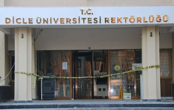 Depremlerin ardından Diyarbakır’da Dicle Üniversitesi rektörlük binası da depremden etkilendi.
