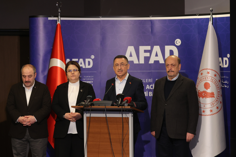 Oktay, Aile ve Sosyal Hizmetler Bakanı Derya Yanık, Çalışma ve Sosyal Güvenlik Bakanı Vedat Bilgin ve Sanayi ve Teknoloji Bakanı Mustafa Varank ile AFAD Koordinasyon Merkezi'nde, merkez üssü Kahramanmaraş'ın Pazarcık ve Elbistan ilçeleri olan ve 10 ili etkileyen depremlere ilişkin açıklamalarda bulundu.