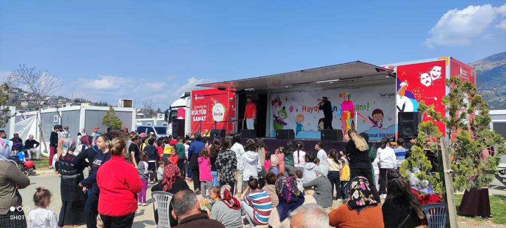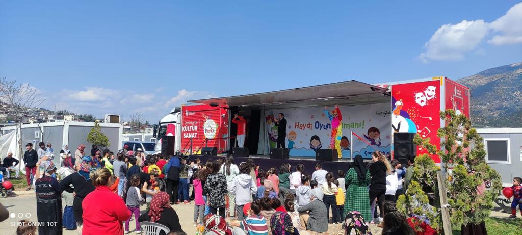 Gönüllü tiyatrocuların da yer aldığı etkinliklerde çocukların travma etkisinden uzaklaşıp, doyasıya eğlenmesi sağlanıyor. Etkinliklere ebeveynleriyle katılan çocuklar; Karagöz Hacivat, palyaço, sahne gösterileri ve interaktif çocuk oyunlarıyla keyifli vakit geçiriyor. Ayrıca çocuklara, patlamış mısır ve pamuk şekeri de ikram ediliyor.