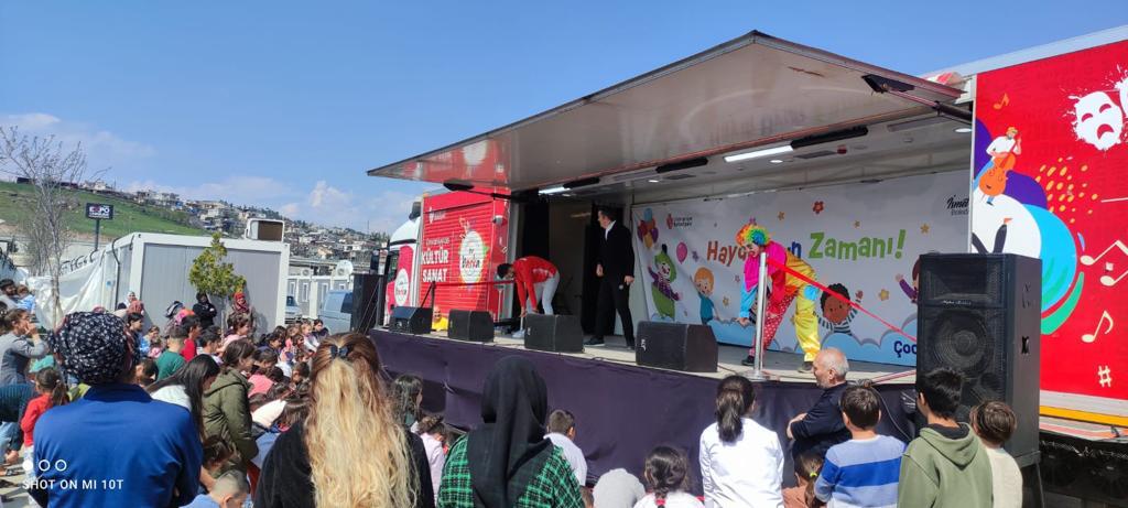 Kahramanmaraş Onikişubat’ta bulunan Ümraniye Belediyesi’ne ait etkinlik TIR’ı çocuklar için aktiviteler düzenlemeye devam ediyor.