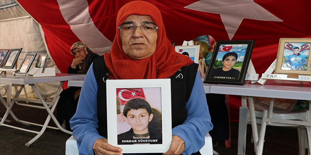 Oğlundan hiç haber alamadığını belirten Yüceyurt, "Çocuklarımızı kandırıp götürüyorlar. Oğlumu PKK ve HDP'den istiyorum. Mücadelemde kararlıyım, oğlum gelene kadar onu burada bekliyorum." dedi.