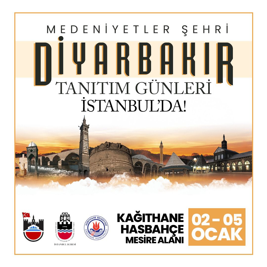 2-3-4-5 Ocak tarihleri arasında Kağıthane Hasbahçe’de Etkinlik alanında yöresel İstanbul Kağıthane Hasbahçe’de gerçekleşecek tanıtım günlerinde Diyarbakır’ın tüm güzellikleri İstanbul’a geliyor.