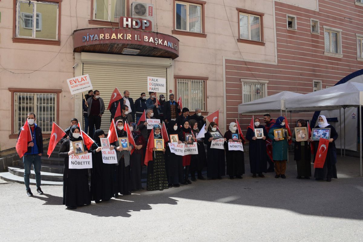 Terör örgütü PKK tarafından çocukları dağa kaçırılan aileler, 3 Eylül 2019'da Diyarbakır HDP İl Başkanlığı önünde evlat nöbetine başladı.