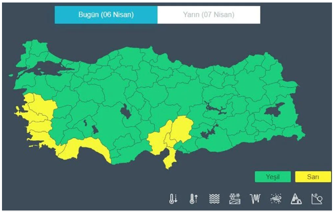 Hava durumu potansiyel tehlikelidir: Tahmin edilen meteorolojik hadise olağandışı olmamakla birlikte, meteorolojik şartlardan etkilenebilecek faaliyetler konusunda dikkatli olunmalıdır.