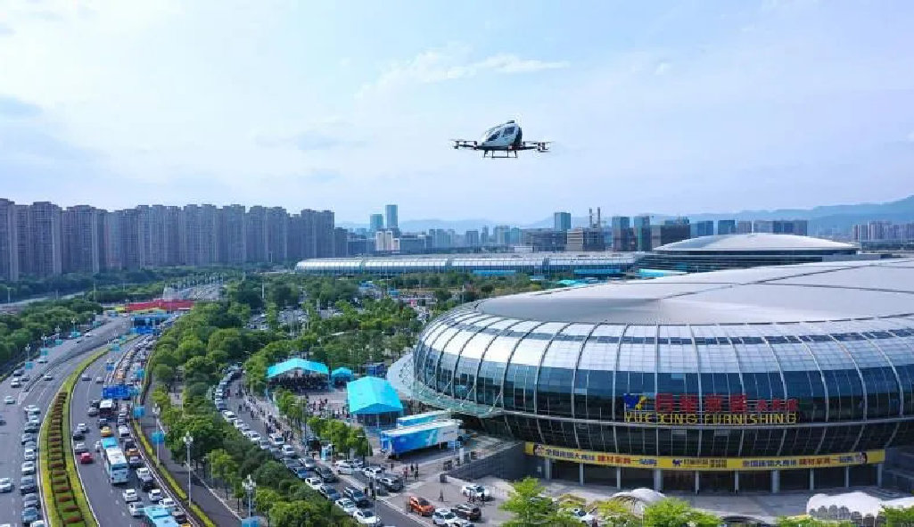 Dördüncü Dijital Çin Zirvesi’nde Çinli bir şirket tarafından imal edilen sürücüsüz drone taksi iki yolcusuyla uçuş yaptı.
