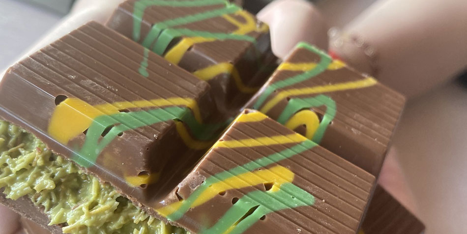 İlk olarak “Can’t Get Knafeh of It” (Künefeye Doyamıyorum) adıyla sunulan Dubai Çikolatası, çıtır kadayıf, Antep fıstığı ve zengin çikolatanın bir araya geldiği eşsiz bir lezzet kombinasyonu sunuyor. Yoğun aromalar ve farklı dokuların birleşimi, ürünü tam anlamıyla bir lezzet patlamasına dönüştürüyor.