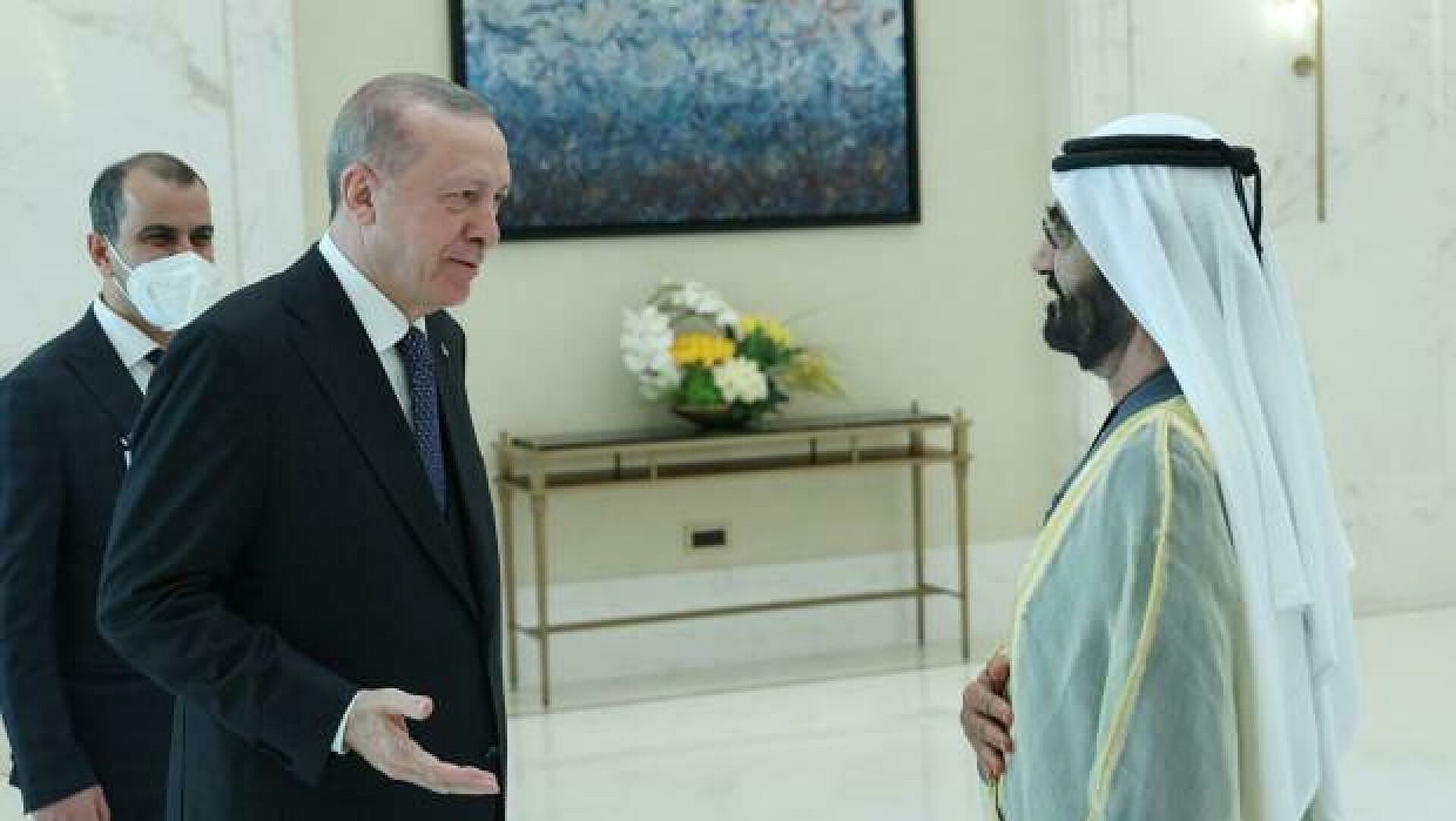Erdoğan, BAE Devlet Başkan Yardımcısı, Başbakan ve Dubai Emiri Şeyh Muhammed Bin Raşid El Maktum ile görüştü. Görüşmede ikili ilişkiler ele alındı.