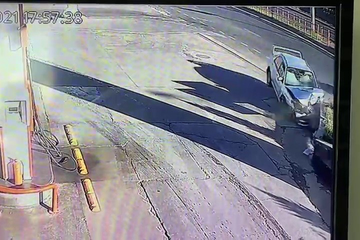 Hurdaya gönen otomobilin benzin istasyonuna girmemesi faciayı önlerken, kaza anı güvenlik kameralarına yansıdı.Olayla ilgili inceleme başlatıldı.
