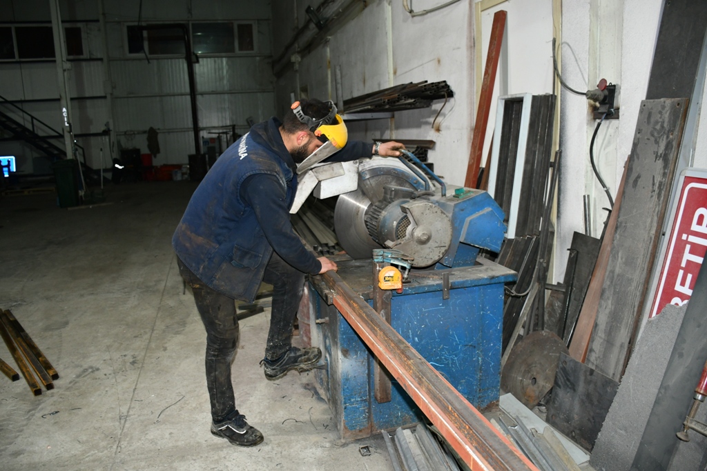 Lavabo ve tuvaletlerin üretimi için doğrama, birleştirme, boyama, kapı montajı ve elektrik aksamlarının bağlanması için 12 kişiden oluşan 5 ayrı ekip oluşturuldu. Kadın ve erkek olmak üzere 10 çift (20 adet) lavabo ve tuvalet üretimi hızla devam ediyor.