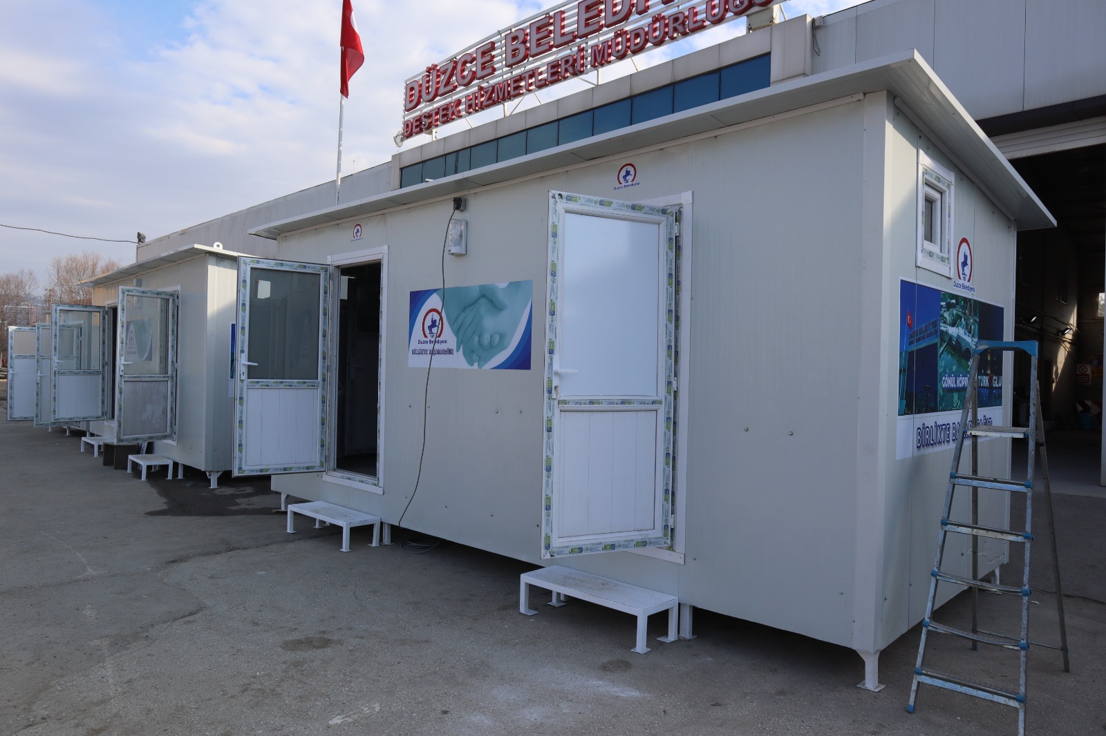 Destek Hizmetler Müdürlüğü şantiyesinde yürütülen seri üretim çalışmaları kapsamında tekli duşlar kompakt hale getirilerek daha kullanışlı hale getirildi. Yeni üretimde kadınlar ve erkekler için üretilen konteynerler içinde 3 adet duş alanı ve 3 adet WC yapıldı. Bunlara ek olarak yine 4 adet duş, 4 adet de WC’nin ayrıca üretimi tamamlandı, depremzedelerin kullanımı için belirlenen yerlere ulaştırılacak.