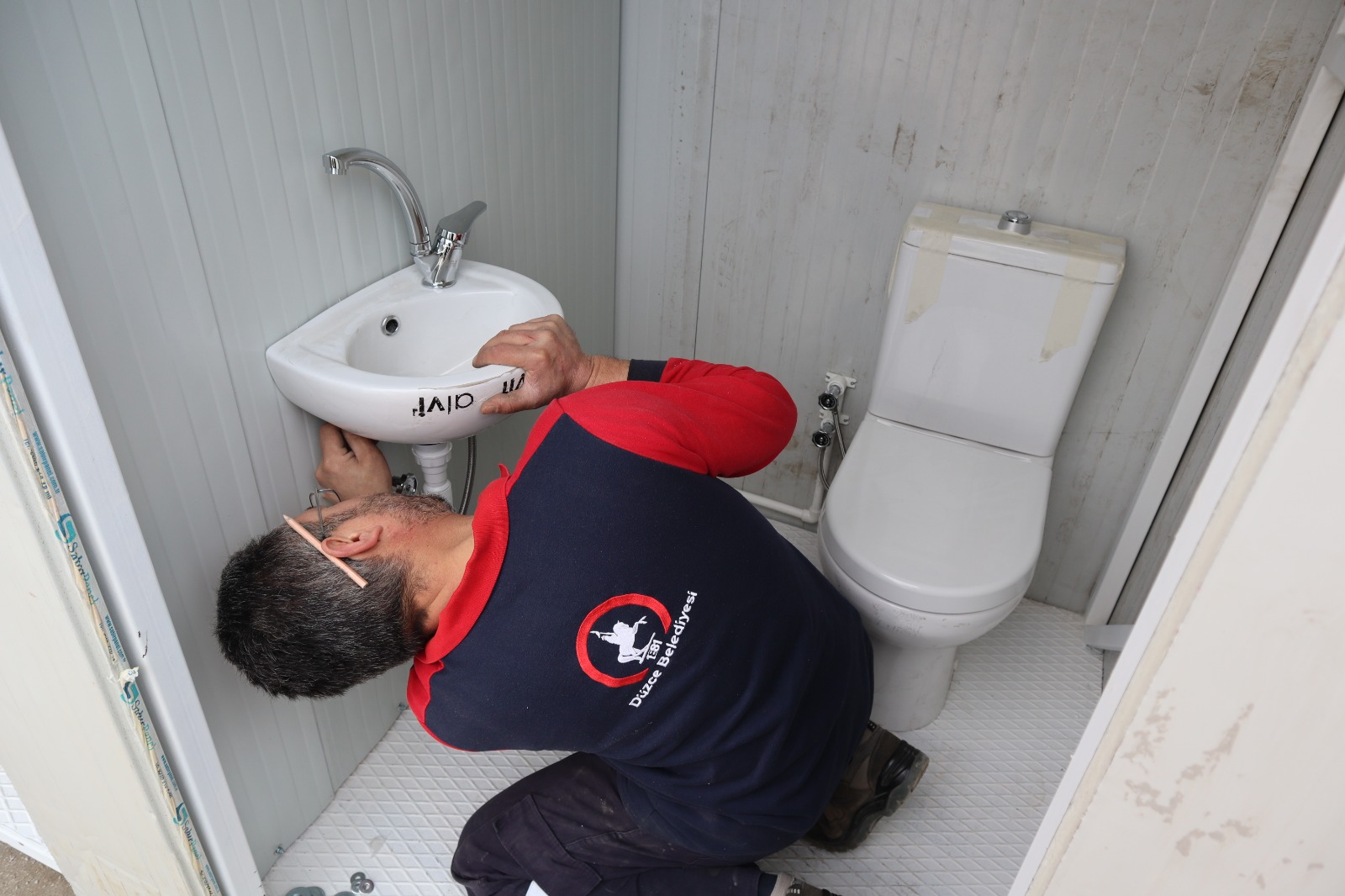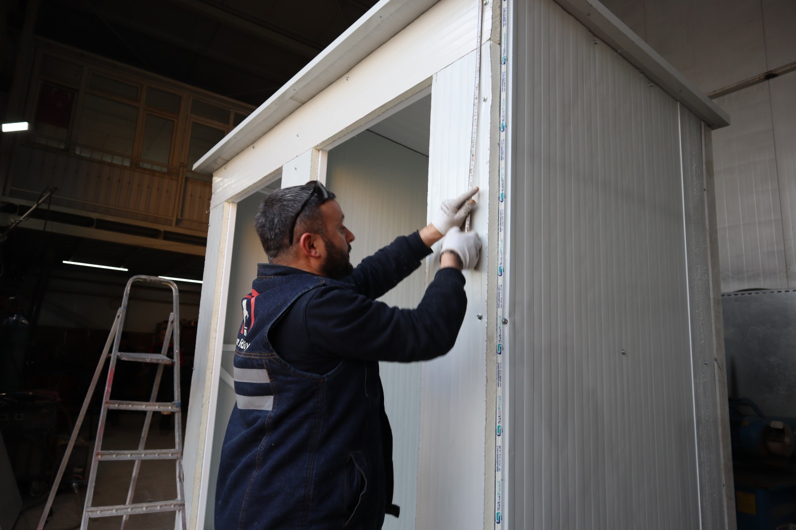 Başkan Dr. Faruk Özlü’nün afetin ilk gününden itibaren koordine ettiği yardım çalışmalarının en anlamlılarından biri de Destek Hizmetler Müdürlüğü’nde yürütülen duş, WC ve soba üretimi oldu.