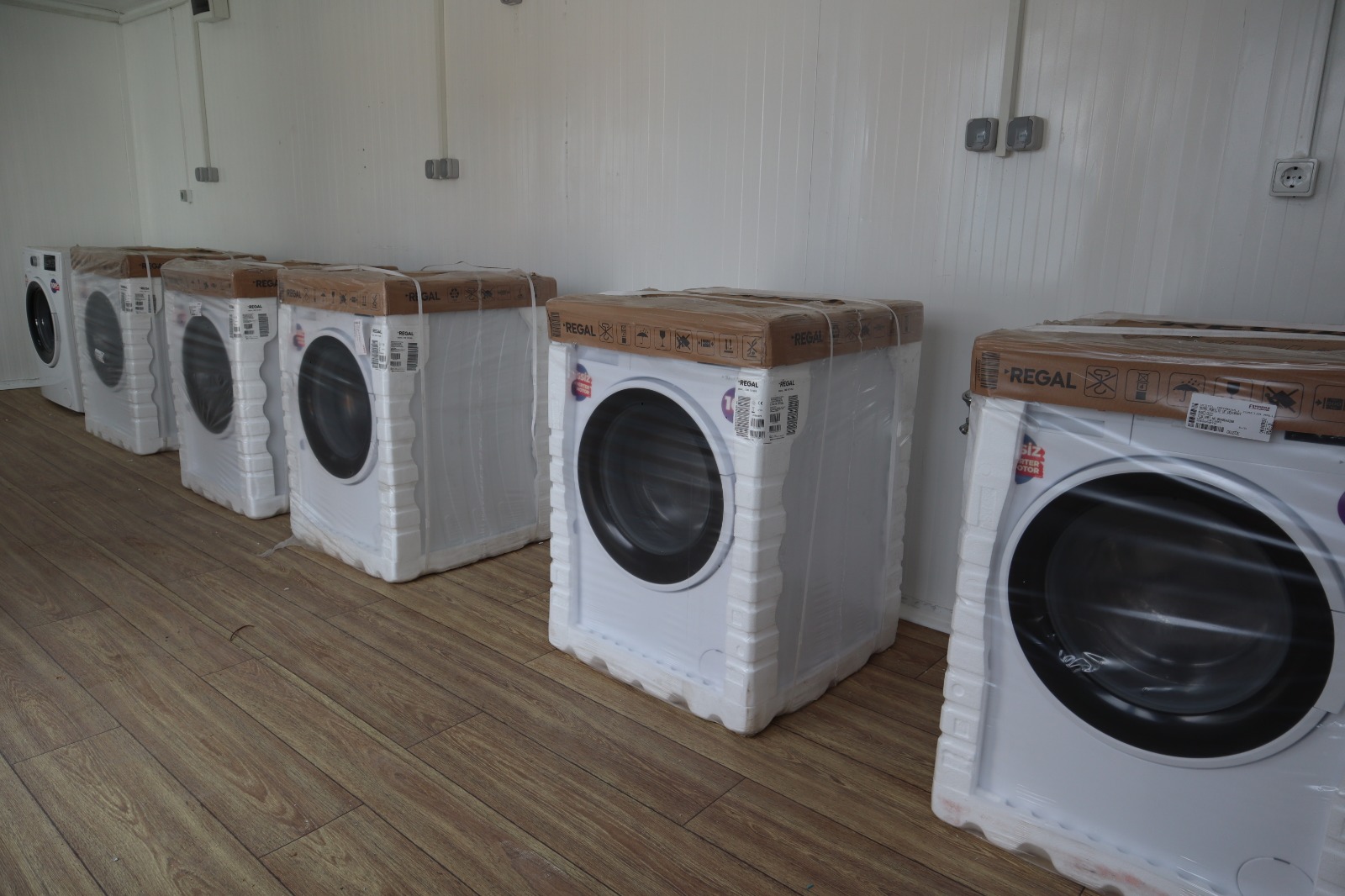 Destek Hizmetler Müdürlüğü, depremzedelerin hijyen içinde yaşamasını sağlamak için üretim geliştirmeyi de sürdürdü. Bu hafta yapılan çalışmalar kapsamında depremzedelerin yaşadığı geçici yaşam alanlarına ulaştırılmak üzere bir çamaşırhane üretildi. İçinde 6 adet çamaşır makinesinin yer aldığı konteyner çamaşırhane ve diğer üretimi yapılan kompakt ihtiyaç noktaları en kısa sürede bölgeye gönderilecek.