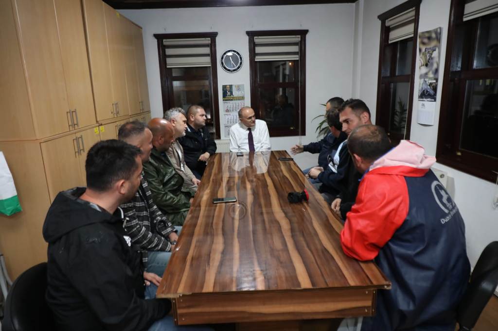 Yağışların devam ederken yardımcıları ve ilgili birim müdürleri ile saha çalışmalarını ziyaret eden Düzce Belediye Başkanı Dr. Faruk Özlü, ekiplerden yapılan çalışmalar ile ilgili bilgi aldı. Başkan Özlü, özverili çalışmalarından ötürü personele teşekkür etti.