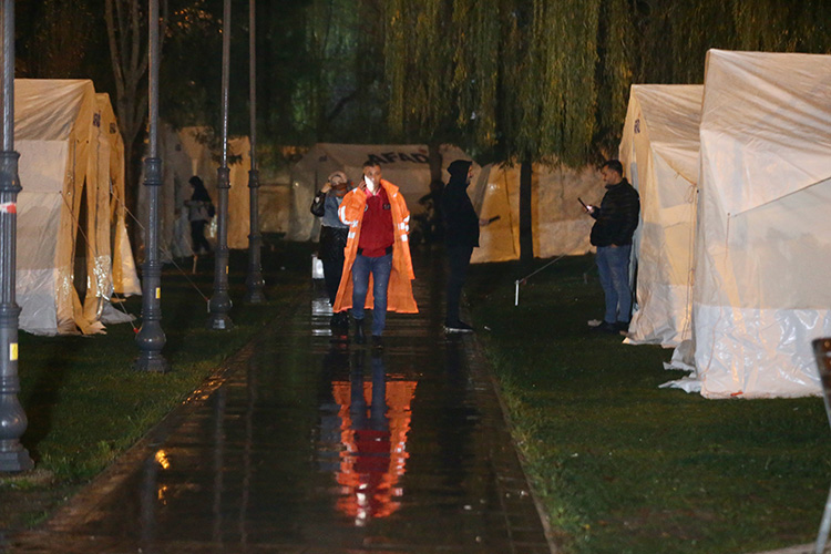 Korktukları için evlerine dönmek istemeyen vatandaşlar için Millet Bahçesi ve Anıt Park alanlarına AFAD çadırları kuruldu.