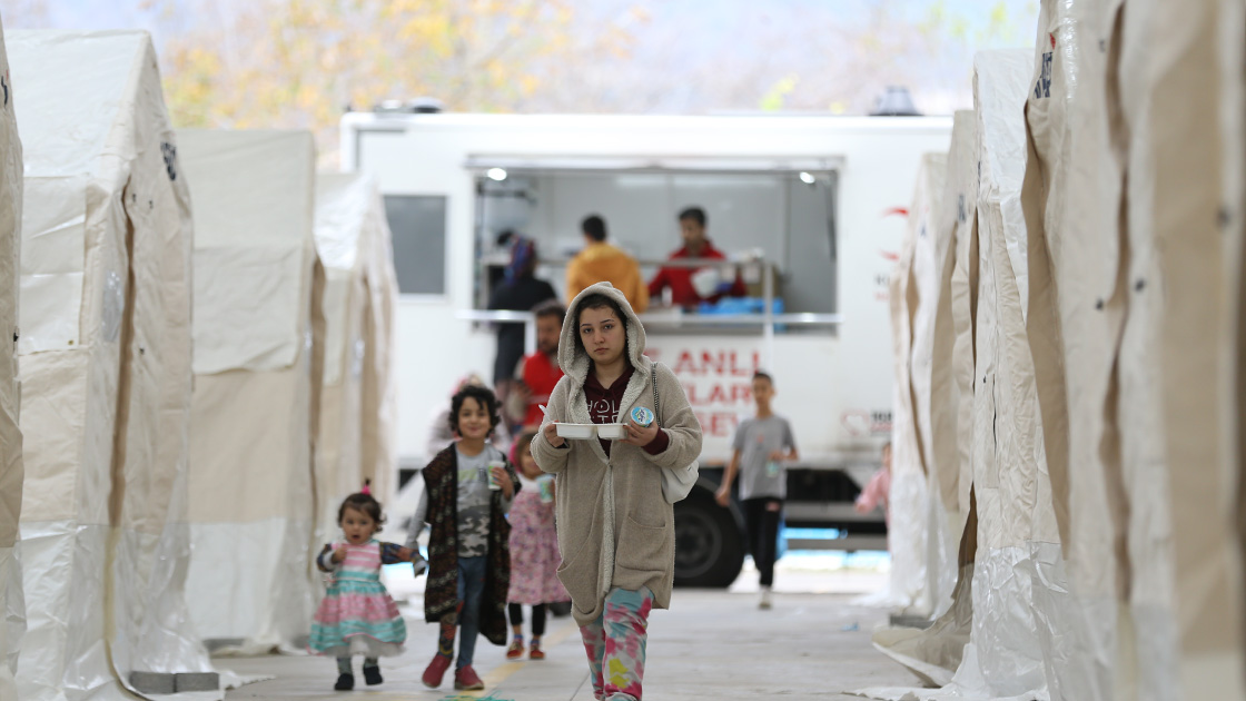 Çadırlarda bekleyişi süren depremzedelere, Türk Kızılay ekipleri tarafından yemek ikramında bulunuluyor.