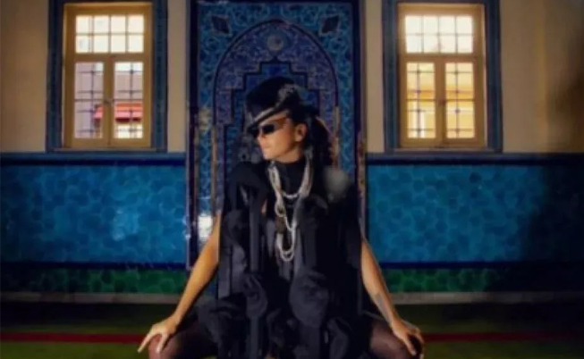 İstanbul'da bulunan tarihi bir otelin içindeki camide objektif karşısına geçen Eda Taşpınar, uygunsuz kıyafetiyle mihrap önünde poz verdi.