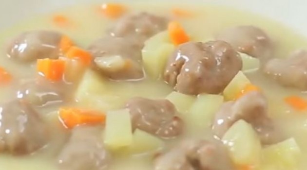 Karışıma su eklenip kaynaması için bırakılır. Su kaynayınca köfteler eklenir. Köfte ve patatesler tam olarak pişene kadar pişirilir.