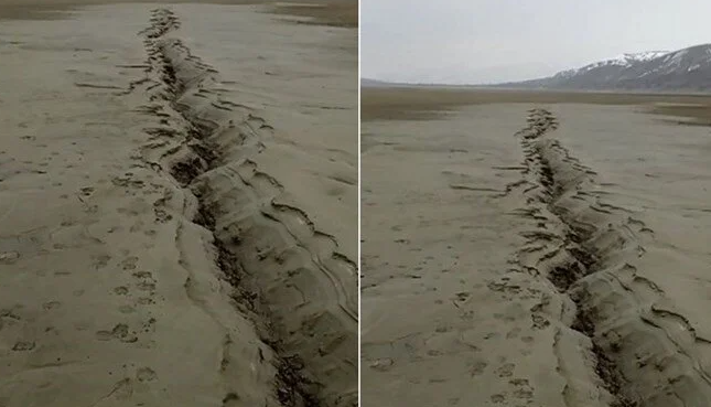 Yapılan ilk incelemede yarığın, fay hattındaki zemin sıvılaşması olduğu tespit edildi.