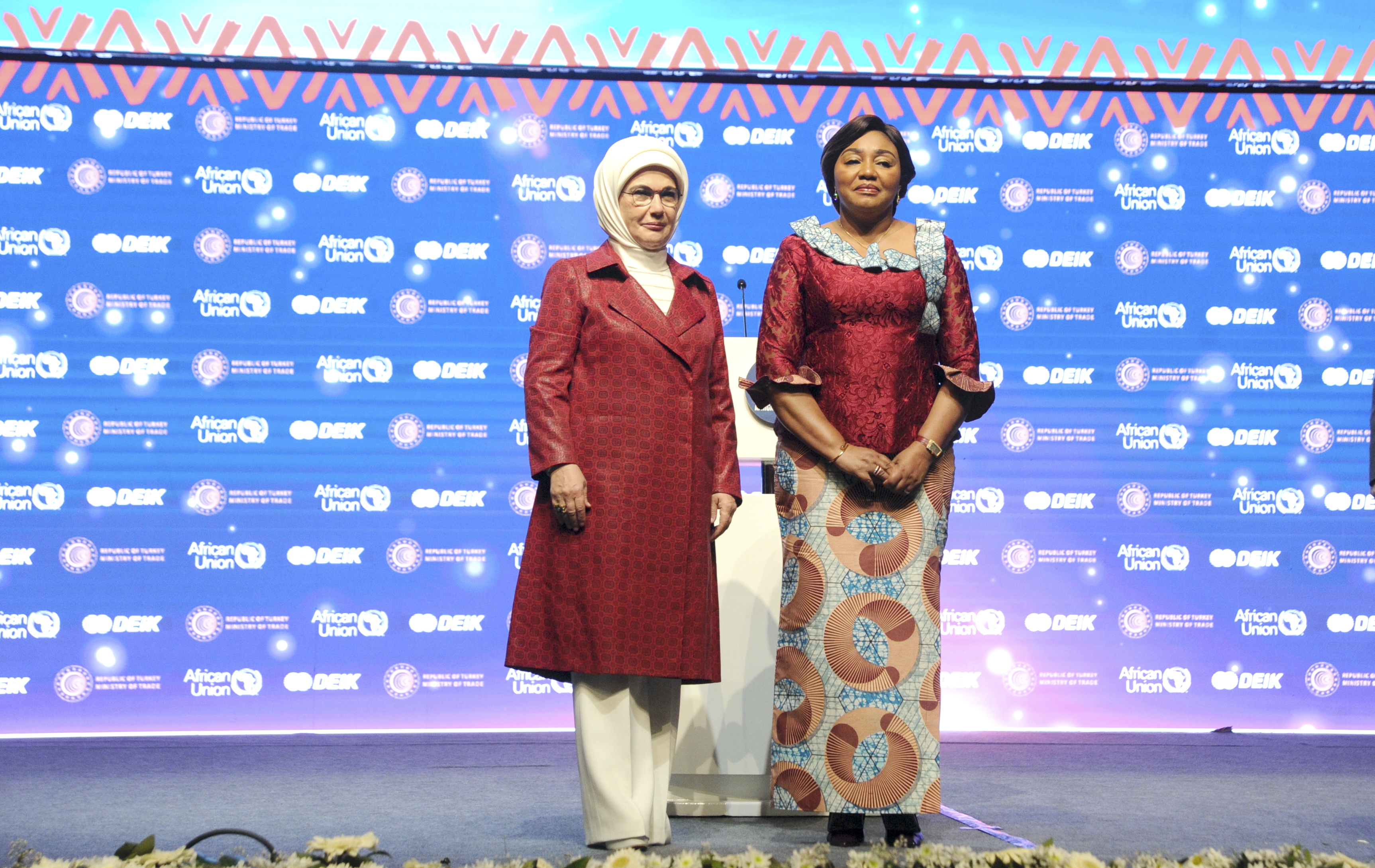 Cumhurbaşkanı Recep Tayyip Erdoğan'ın eşi Emine Erdoğan ve Kongo Demokratik Cumhuriyeti Cumhurbaşkanı Felix Antoine Tshisekedi Tshilombo'nun eşi Denise Nyakeru Tshisekedi Tshilombo, Dış Ekonomik İlişkiler Kurulu (DEİK) tarafından Ticaret Bakanlığı ve Afrika Birliği Komisyonu iş birliğiyle İstanbul Kongre Merkezi'nde düzenlenen Türkiye-Afrika 3'üncü Ekonomi ve İş Forumu kapsamındaki ‘Türkiye-Afrika Kadın Liderlik Diyaloğu Paneli'ne katıldı.