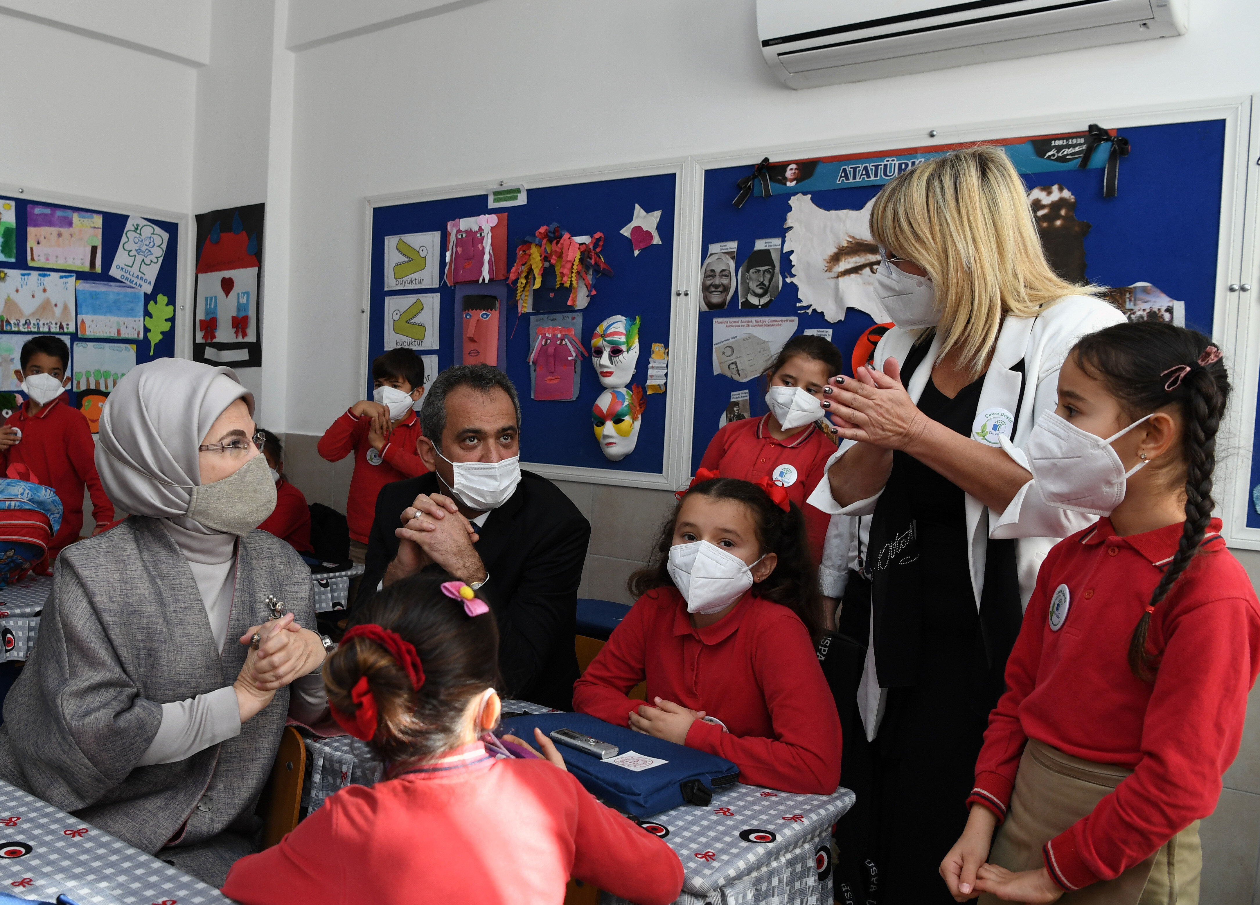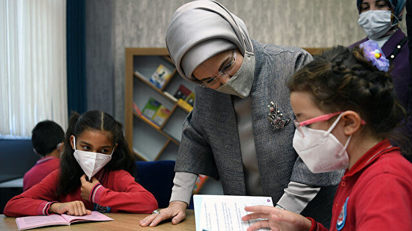 Emine Erdoğan, Antalya'nın Serik ilçesindeki Kadriye İlkokulu'nun kütüphanesinin açılışına katıldı. Öğrencilerle sohbet eden Erdoğan, Milli Eğitim Bakanlığı meslek liselerinde yeni tip koronavirüse (Kovid-19) yönelik geliştirilen hızlı antijen kit uygulamasının müjdesini verdi.