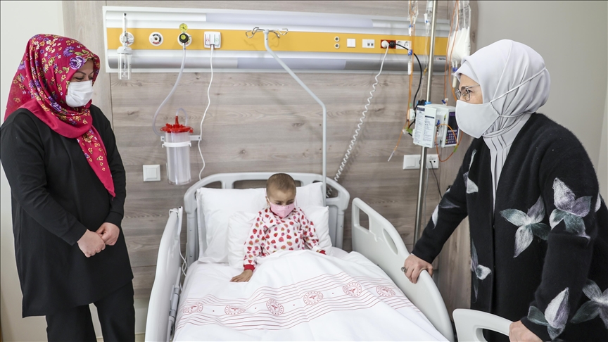 Şanlıurfa'dan kızı Hatice Defne Çiftçi'nin tedavisi için gelen Zeynep Çiftçi de "20 gündür bu hastanedeyiz, tedavi görüyoruz. Bugün de Emine Hanım geldi, çok memnun olduk. Çok teşekkür ederiz. Hediyeler getirdi, sağ olsun, bizi çok mutlu etti." ifadelerini kullandı.
