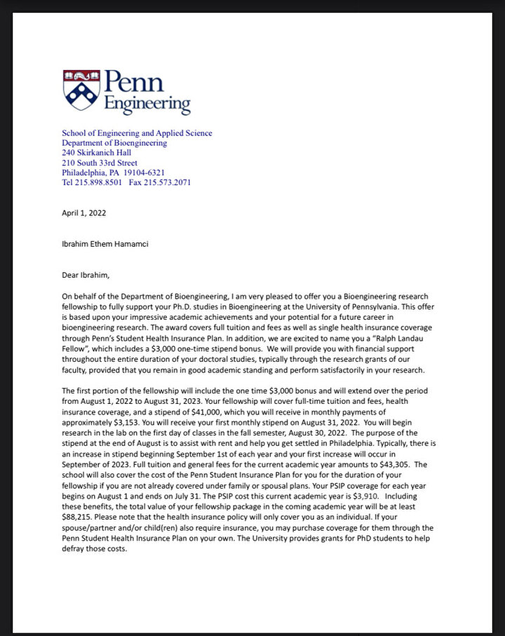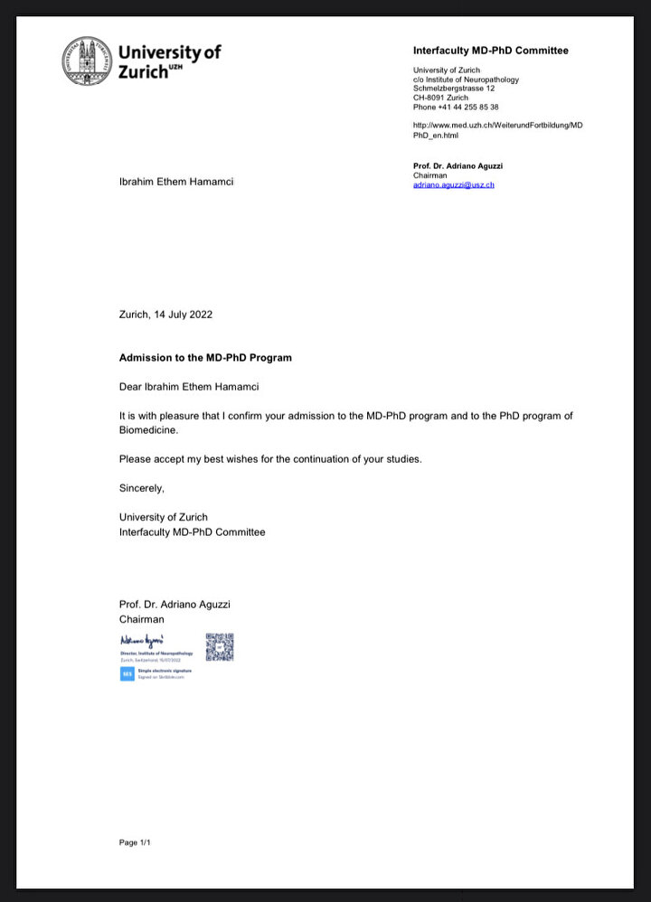 2019 yılında Amgen Vakfı'nın düzenlediği programla beraber ETH Zürih Üniversitesi'ne gittim ve bu programa başvuran en başarılı 15 öğrenciden biri seçilerek ETH Zürih Üniversitesi'nde bir staj gerçekleştirdim. Çalışmalarımı Cambridge Üniversitesi'ne sundum. Sonraki sene pandemi dolayısıyla yurt dışına gidemedim. Ondan sonraki yıl Pensilvanya Üniversitesi'nde ve University of California Los Angeles'ta stajlar gerçekleştirdim. 5'nci sınıfın yazında da Harvard Üniversitesi'nin bünyesinde bulunan Mass General Hospital'de stajlarımı yaptım. Şimdi de bilgisayar mühendisliğindeki doktora eğitimim için İsviçre'ye gideceğim."