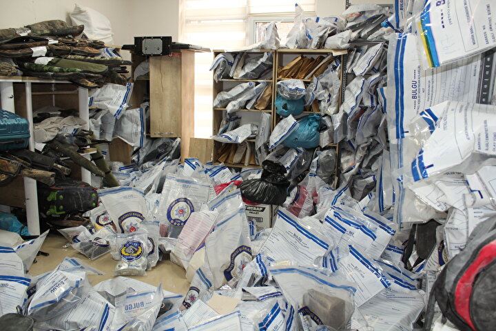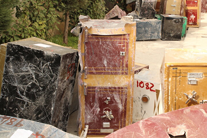 Kahramanmaraş merkezli depremlerin ardından bina enkazlarından çıkartılan 100 çelik kasa, para dolu çantalar ve ziynet eşyaları, Onikişubat İlçe Emniyet Müdürlüğü bahçesinde ve kameraların bulunduğu özel bir odada muhafaza ediliyor.