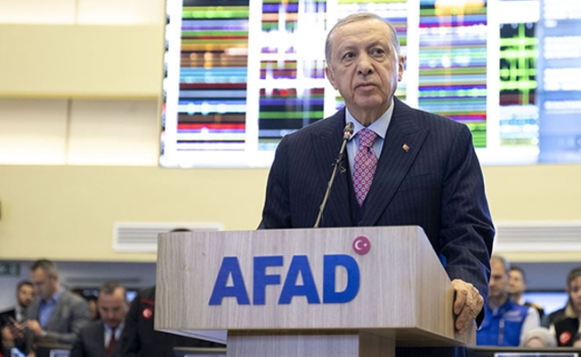 Cumhurbaşkanı Recep Tayyip Erdoğan Kahramanmaraş'ın Pazarcık ilçesinde meydana gelen depremle ilgili son bilgileri AFAD Koordinasyon Merkezi'nde yaptığı basın toplantısında açıkladı.