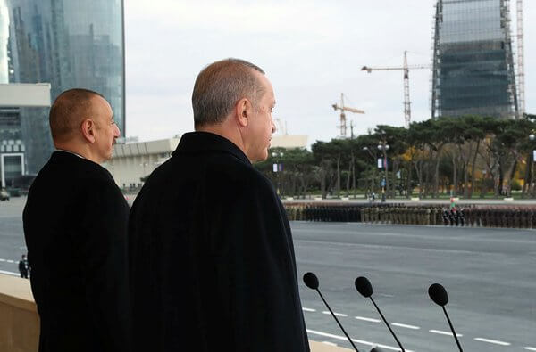 30 seneden sonra Dağlık Karabağ ve Azerbaycan halkını buluşturan kutlu savaş neferlerini tebrik eder, onları cepheye yollayan analarının ellerinden öperim. Böylesine önemli bir günde Azerbaycan'da olmaktan çok büyük bir gurur ve onur duyuyorum. Azerbaycan Cumhurbaşkanı Sayın İlham Aliyev kardeşime bu nazik davetinden ötürü teşekkür ediyorum. Şehit düşen aziz askerlere rahmet, gazilerimize de acil şifalar dilerim.