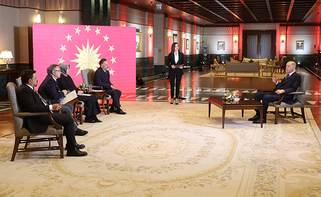 Kamuoyu araştırmaları ve anketlere ilişkin soru üzerine Erdoğan, anketlerin de tıpkı sosyal medya mecraları gibi algı operasyonlarının aracı olarak kullanılabildiğine dikkati çekti.