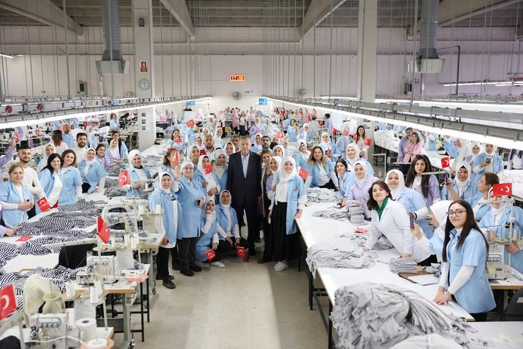 Kadınlara ve fabrika yönetimine kendileriyle bir araya gelerek gösterdikleri sevgi ve samimi misafirperverlik için teşekkür eden Erdoğan, başarılarının artarak devam etmesini diledi.