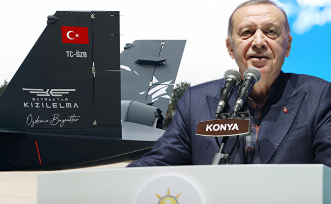 Türkiye'nin yerli ve milli savunma sanayii araçlarına değinen Erdoğan, "İHA, SİHA yetmez dediler şimdi AKINCI'yı ürettiler. F16'ların taşıdığı bombayı AKINCI'da taşıyabiliyor. Türkiye nereden nereye geldi. KIZILELMA ile beraber bu ufuktur, hedeftir." ifadelerini kullandı.