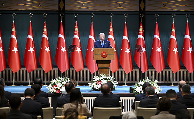 Cumhurbaşkanı Recep Tayyip Erdoğan, Cumhurbaşkanlığı Külliyesi'nde Kabine Toplantısı'nın ardından açıklamalarda bulundu.