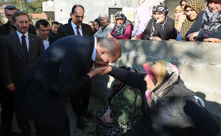 Cenaze evine giren Cumhurbaşkanı Erdoğan, "Allah sabırlar versin, mekanı cennet olsun" ifadelerini kullanarak, acılı annenin elini öptü.