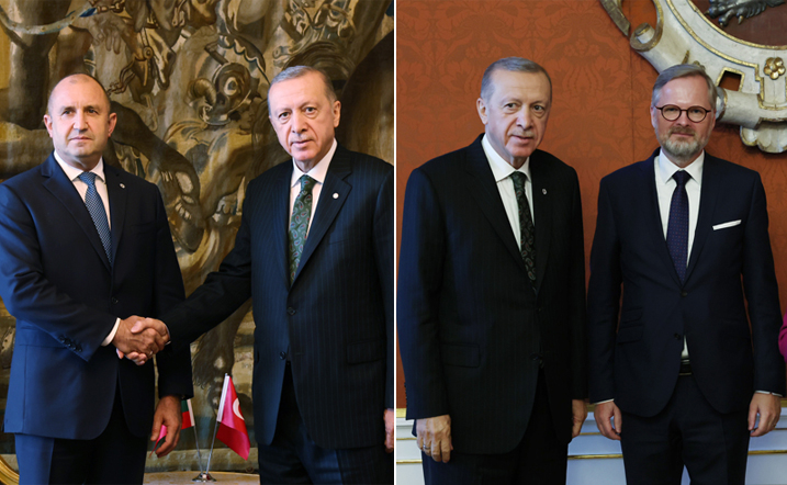 Cumhurbaşkanı Recep Tayyip Erdoğan, Avrupa Siyasi Topluluğu (AST) toplantısı için bulunduğu Çekya'nın başkenti Prag'da Bulgaristan Cumhurbaşkanı Rumen Radev ile bir araya geldi.