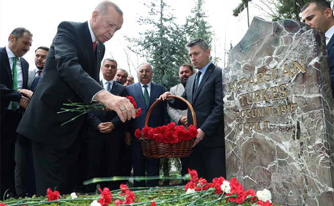 Cumhurbaşkanı Erdoğan, vefatının 26'ncı yıl dönümü nedeniyle Alparslan Türkeş'in Yenimahalle ilçesindeki anıt mezarını ziyaret etti.
