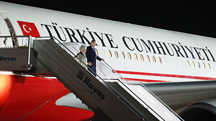 Havalimanından ayrılan Erdoğan ve beraberindeki heyet, konaklayacakları otele geçti.