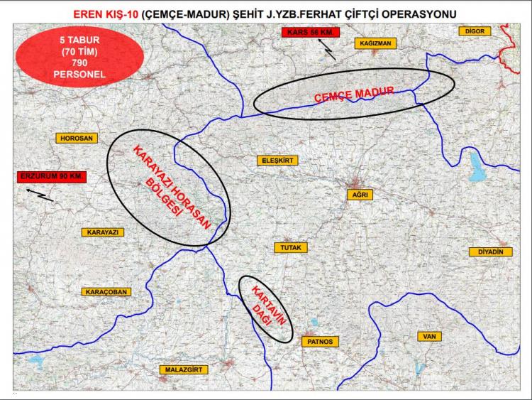 Bakanlıktan yapılan yazılı açıklamaya göre; PKK terör örgütünü ülke gündeminden çıkarmak ve bölgede barındığı değerlendirilen teröristleri etkisiz hale getirmek amacıyla, Ağrı, Kars ve Erzurum illerinde 'Eren Kış-10 (Çemçe - Madur ) Şehit Jandarma Yüzbaşı Ferhat Çiftçi' operasyonu başlatıldı.