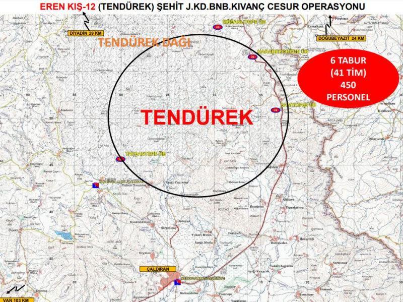 Van'da İçişleri Bakanlığı'nca, Eren Kış-12 Tendürek Şehit Jandarma Kıdemli Binbaşı Kıvanç Cesur operasyonu başlatıldı.
