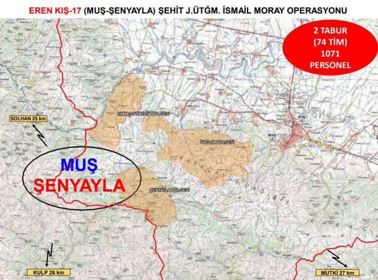 Halen kış üstlenmesindeki teröristleri ARA-BUL-YOK ET taktiğiyle etkisiz hale getirmek, başta eylem olmak üzere her türlü hazırlıklarını boşa çıkarmak ve bölgedeki huzur güven ortamını pekiştirmek maksadıyla, Muş İlinde “EREN KIŞ-17 (MUŞ- ŞENYAYLA) ŞEHİT J.ÜTĞM. İSMAİL MORAY” Operasyonu başlatıldı.
