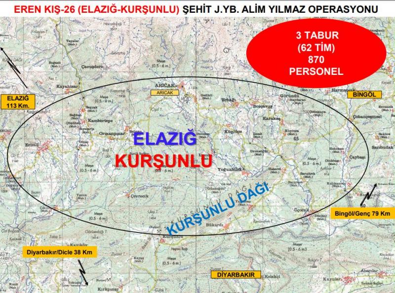 Bölgede barınan teröristleri ARA-BUL-YOK ET taktiğiyle etkisiz hale getirmek, eylem hazırlıklarını boşa çıkarmak ve bölgedeki huzur güven ortamını pekiştirmek maksadıyla, Elazığ İlinde “EREN KIŞ-26 (ELAZIĞ-KURŞUNLU) ŞEHİT J.YB. ALİM YILMAZ” Operasyonu başlatıldı.