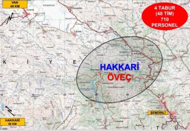 Operasyonda, Hakkari İl Jandarma Komutanlığına bağlı jandarma özel harekat (JÖH), jandarma komando ile polis özel harekat (PÖH) ve güvenlik korucu timlerinden oluşan 710 personel 48 operasyonel tim görev aldı.