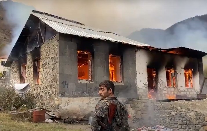 Azerbaycan Güvenlik Güçleri Sömürü Altındaki Topraklarını Kurtarmak için 44 Gündür verdikleri Mücadele Neticesinde Ermeniler Bulundukları Topraklardan 10 Kasım’da imzalanan üçlü Rusya-Azerbaycan-Ermenistan anlaşması gereği Kelbecer, Laçin ve Ağdam rayonlarından çekilmeye başladı.Ermeniler Çekilmek Zorunda Kaldıkları Topraklar Üzerindeki Evleri Yakıp Yıkarak Bir Kez Daha Gerçek Yüzlerini Ortaya Koymuş Oldular.